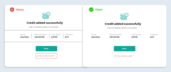 若想要將兩個不相關的元素分隔開來,使用分割線似乎理所應當,但不得不說這種方式已經過時,而更貼合當下、更好、更優雅的呈現方式是“留白”,因為分割線的方式不僅是因為過時,不僅會讓掃視頁面花費更長的時間,而且增加的信息噪音會影響整體的層次結構。而留白就會好很多。